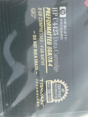 HP C4425 data cartridge, 4GB (8GB compressed). Travan system. Sealed.